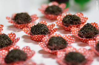 Bolo de massa de chocolate com recheio de brigadeiro trufado e recheio de brigadeiro branco com nozes.